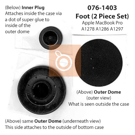 Apple Feet Black (2 Piece with Inner) Apple Foot Set MacBook Pro DVD 13-inch A1278 15-inch A1286 17-inch A1297 (2008-2012)
