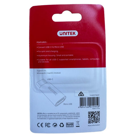 Unitek Cable Adapter micro USB to USB-C (Silver) for Samsung & USB-C Charge Devices